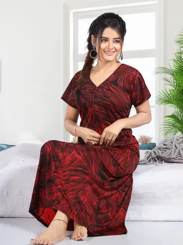 Luxury Satin Nightwear Set for Women – Wine Maroon (6 Pieces Combo)