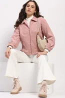Dusty Pink Floral Embossed Zip-Up Jacket