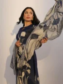 Navy Blue & Cream Bold Floral Printed Suit Set quantity