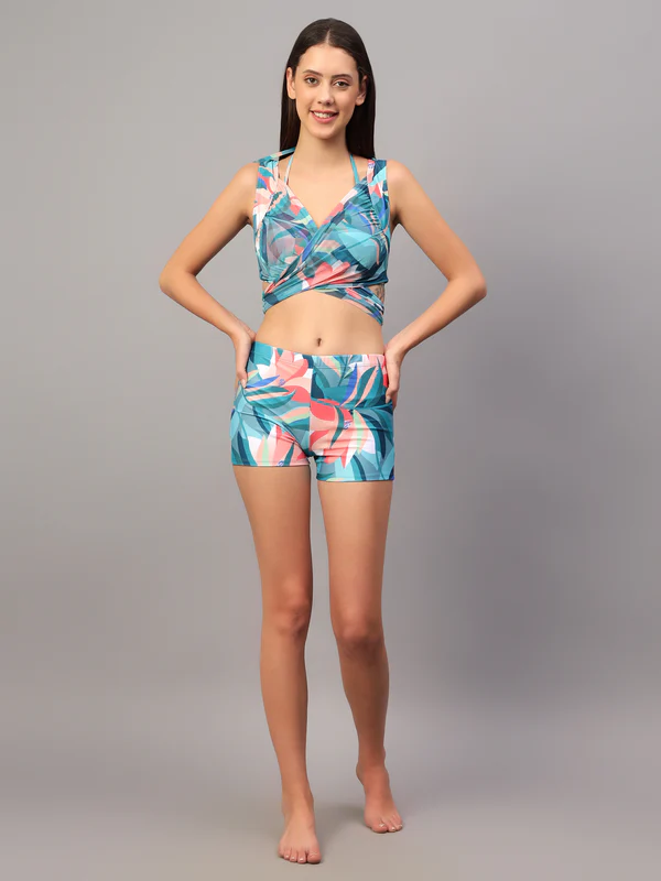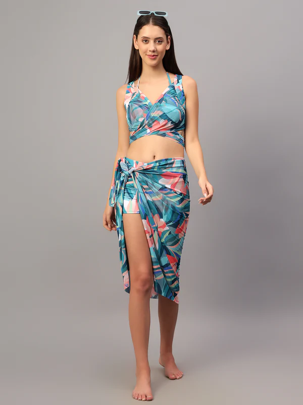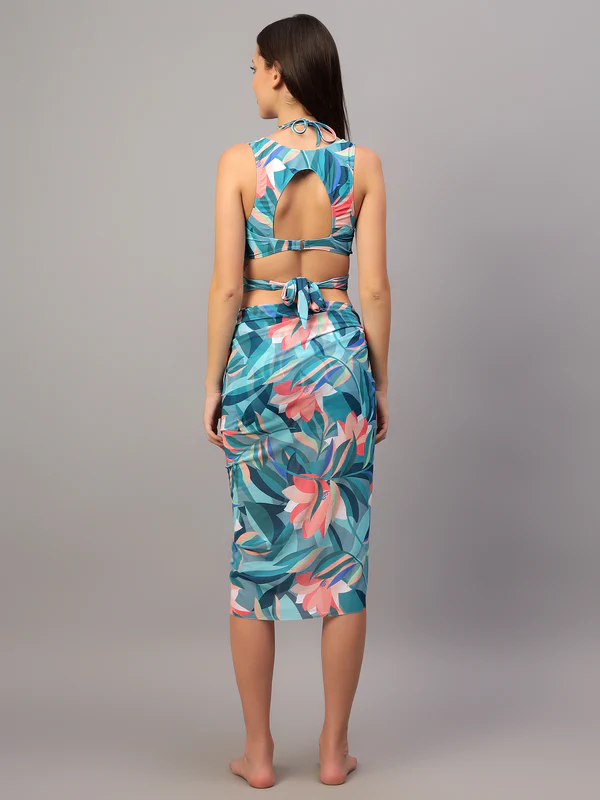 Step into effortless summer style with this Printed Beachwear Co-Ord Set, crafted for women who love a bold, modern, and relaxed look. Is set me ek stylish sleeveless crop top aur matching wrap-style skirt included hai, jo overall outfit ko trendy aur elegant banata hai.
