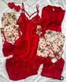 The highlight is the cream-colored Pyjama Set featuring a Cuddly Teddy Bear & Polka Dot Print—it’s cozy, fun, and totally Instagram-worthy! But when you want to switch moods, slip into the Red Satin Robe or the Lace Bralette for a more romantic vibe.